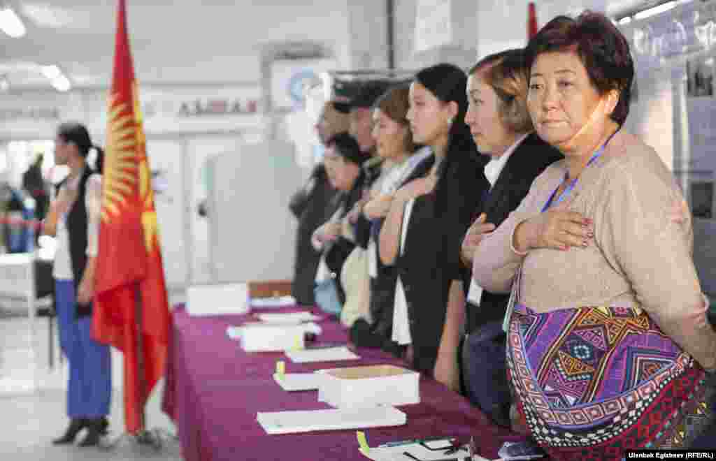 Об отказе участвовать в выборах заявили три кандидата - Бакыт Тооробаев, Камчыбек Ташиев и Азимбек Бекназаров. Имена первых двух были вычеркнуты из бюллетеней. Азимбек Бекназаров подал заявление в ЦИК поздно, из-за чего его имя осталось в бюллетене.