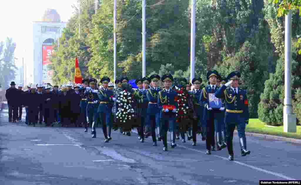 Церемония прощания с Жумагуловым состоялась в Кыргызском национальном драматическом театре им. Т. Абдымомунова.